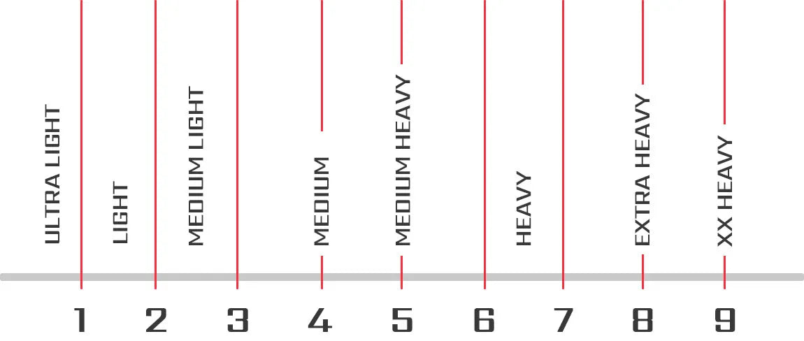 ACTION: UL = Ultra Light, L = Light, M = Medium, MH = Medium heavy, H = Heavy, H+ = Heavy Plus, XH = Extra Heavy, XXH = Extra Extra Heavy. FLEX: S = Slow, MS = Moderate Slow, M = Moderate, MF = Moderate Fast, F = Fast, XF = Extra Fast