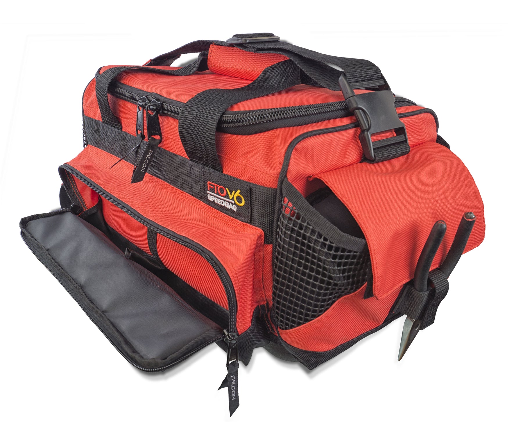 The FTO V6 Speedbag™ is constructed with the highest grade of denier nylon, protected by a durable layer of PVC backing. Foam inserts help prevent damage to latches and hinges. It uses a heavy duty YKK zipper and includes a neoprene pocket and separate pliers holster. The V6 Speedbag™ holds four FTO-101 utility boxes. Imported with boxes USA.